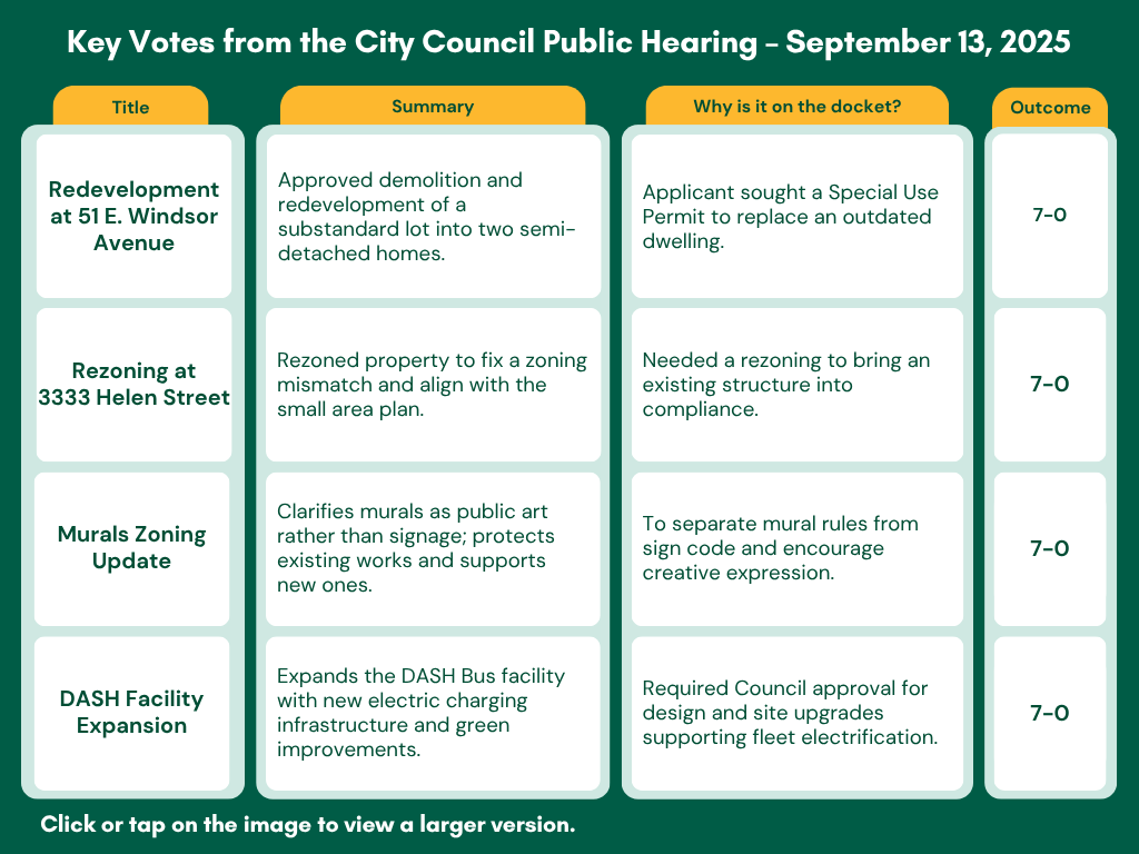 - Approved a Special Use Permit to redevelop a substandard lot at 51 E. Windsor Avenue.