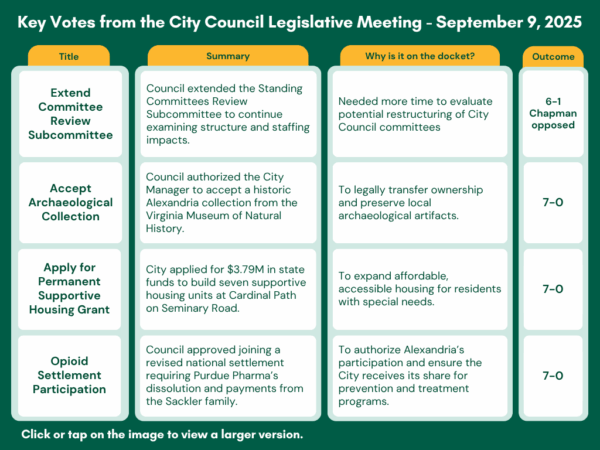 - Adopted the framework for the FY 2027–2029 Alexandria Fund for Human Services grant cycle, informed by the 2025 needs assessment and community engagement.