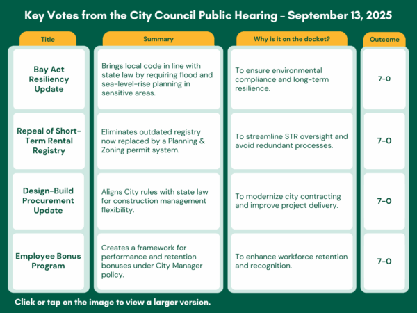 - Repealed the short-term rental registry ordinance, relying on existing STR rules for compliance, neighbor notification, and penalties.